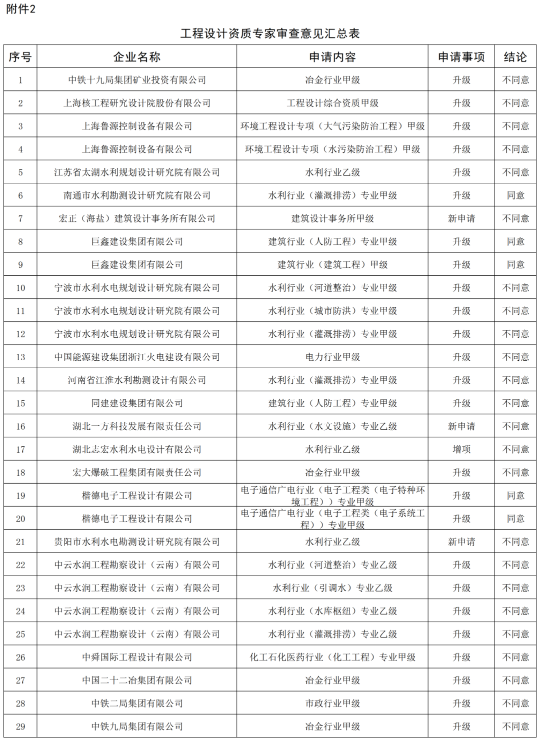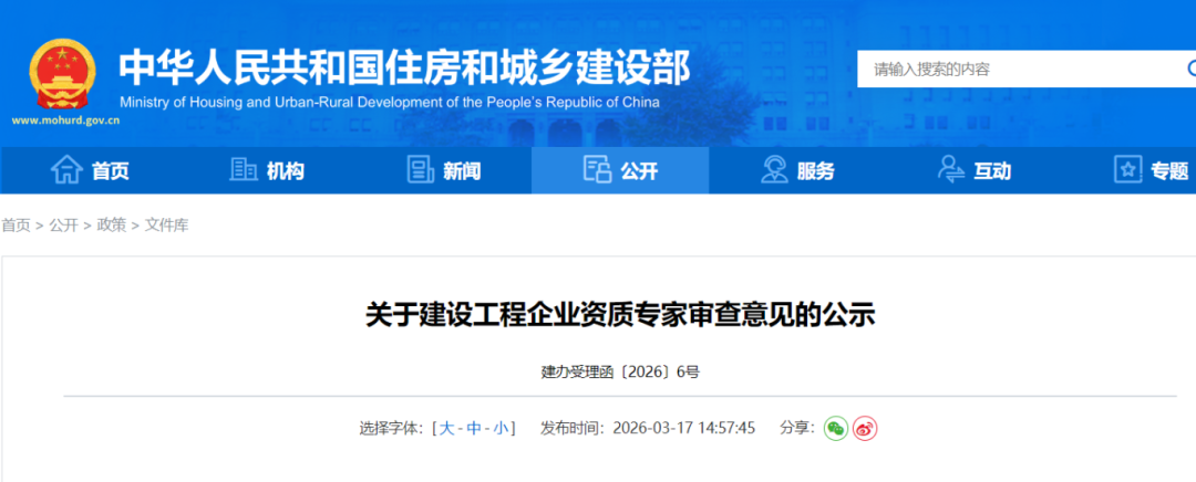 住建部发布关于建设工程企业资质专家审查意见的公示: