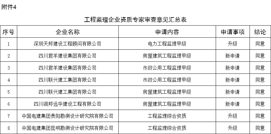 其中,中国电建集团贵阳勘测设计研究院有限公司和中国电建集团昆明勘测设计研究院有限公司两家企业成功升级为工程监理综合资质。该资质是监理资质的最高等级,持证企业可承担所有专业类别的监理业务,不受专业限制。