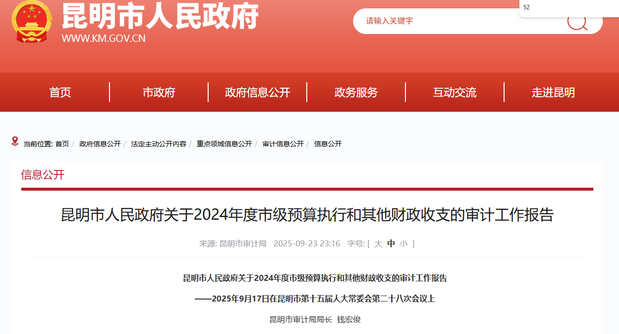 昆明市人民政府关于2024年度市级预算执行和其他财政收支的审计工作报告